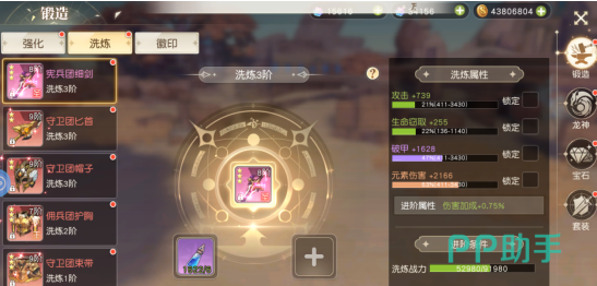 洗练系统用于深度挖掘单件装备潜力。首条洗练属性槽位免费开启,后续槽位需消耗绑定钻石解锁。玩家可选用通用洗练试剂或对应品质(如红色、橙色)专用试剂进行属性重置,目标属性随机生成。所有已激活的洗练属性,在装备更替过程中同样支持完整继承,无需重复投入资源。