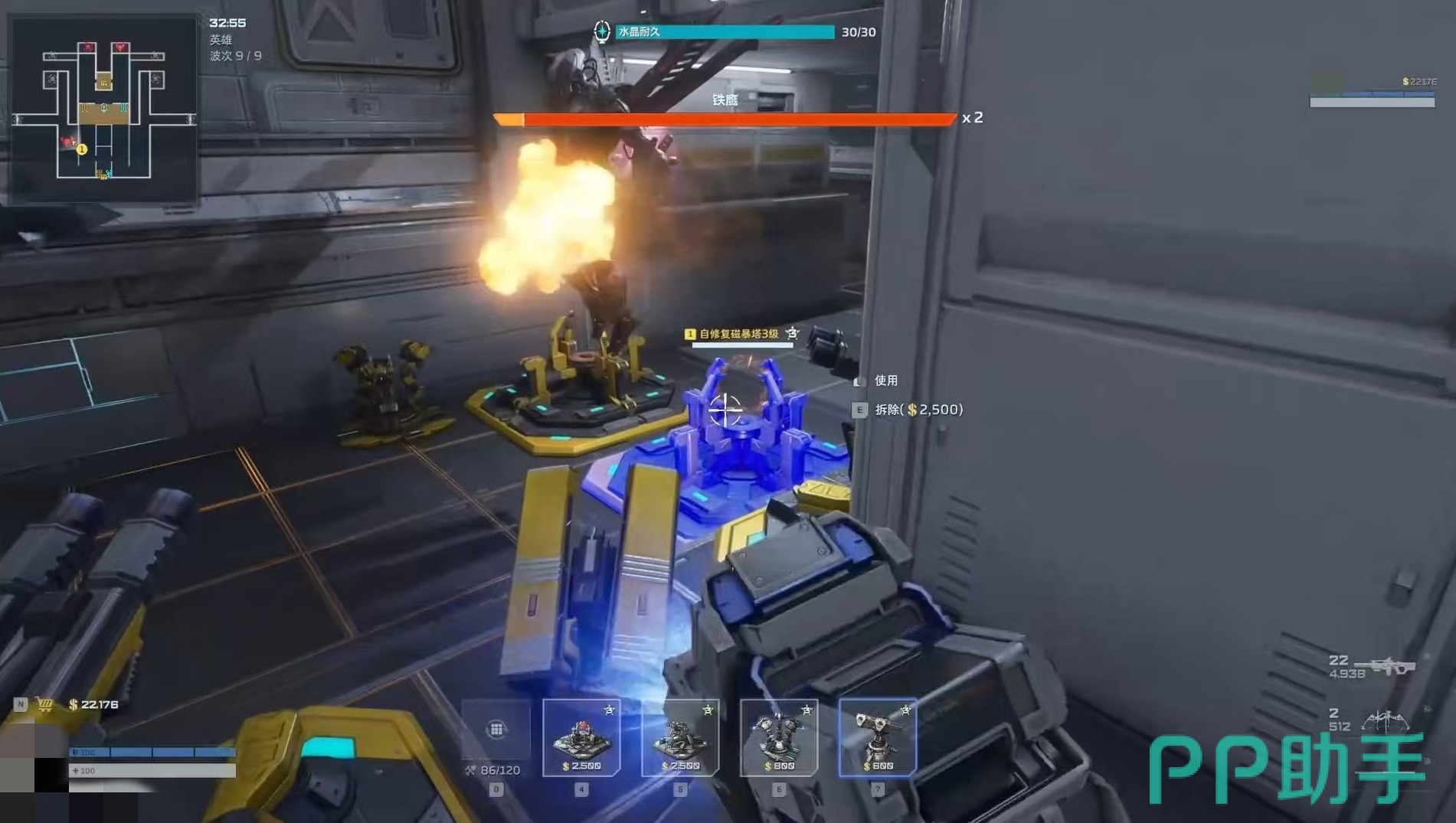 后期阶段(第6–8波)敌方强度持续提升,需保持陷阱密度与更新频率。继续强化自修复磁暴塔、破坏者与修理站组合,并在原有防空点位基础上增补导弹数量,确保对空覆盖无死角。最终BOSS战前,务必清空后方全部建筑,腾出操作空间。左路墙面优先布置发射器,地面放置两座自修复磁暴塔;右路为BOSS固定出现路径,须在此预设发射器,并在其行进地面及周边满布防空导弹;中央开阔区则部署聚能炮,用于集中压制BOSS本体。实战中需根据BOSS移动轨迹动态调整陷阱位置——边拆边建,实时响应,是决胜关键。