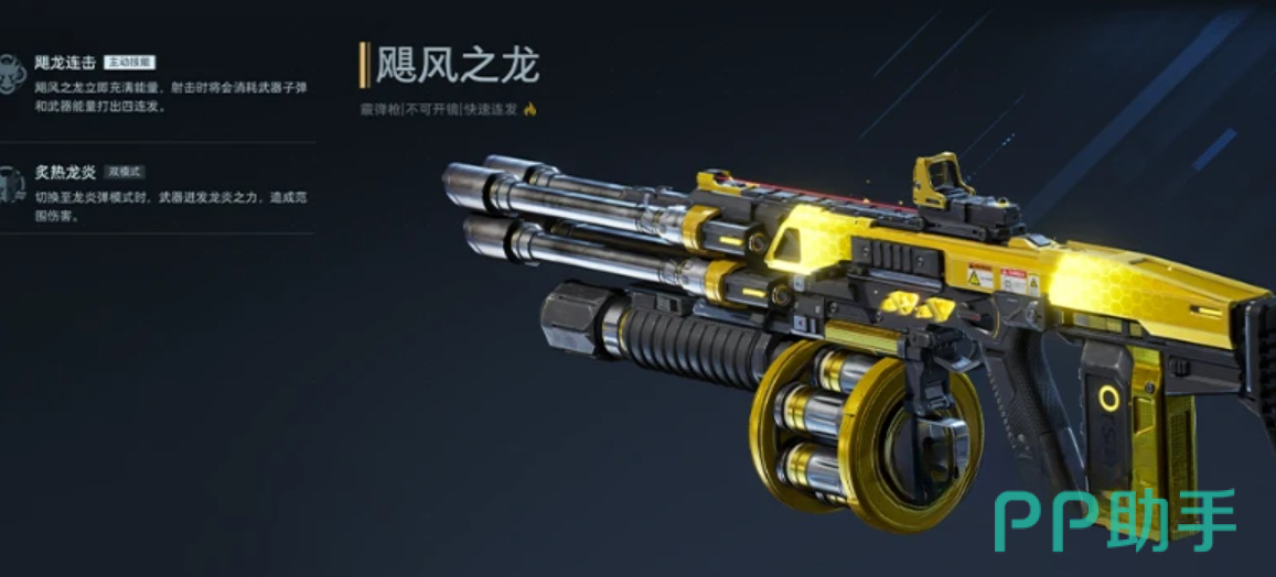 综合性能最均衡的入门首选——飓风之龙。该武器无明显短板:射速稳定、后坐力平缓、连发压枪容错率高,PVE场景中可高效清理密集小怪,PVP对枪时亦能提供持续可靠的火力压制。对于尚未形成固定打法风格的新手而言,它是最稳妥的过渡核心,陪伴玩家平稳度过前中期成长阶段。
