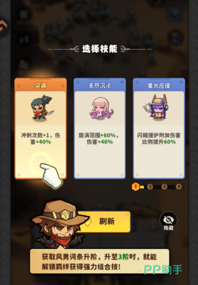 击败丧尸后将获得经验值,用于提升角色等级与基础属性;同时,系统会在战斗中随机投放Roguelike风格技能模块,每次提供三选一的增益选项,涵盖攻击强化、范围扩大、冷却缩减等方向,玩家需依据当前战况即时决策。每波敌人数量固定,成功抵御全部波次即视为通关。持续参与战斗,不仅能积累实战经验,还能逐步解锁稀有武器、限定英雄及专属皮肤。