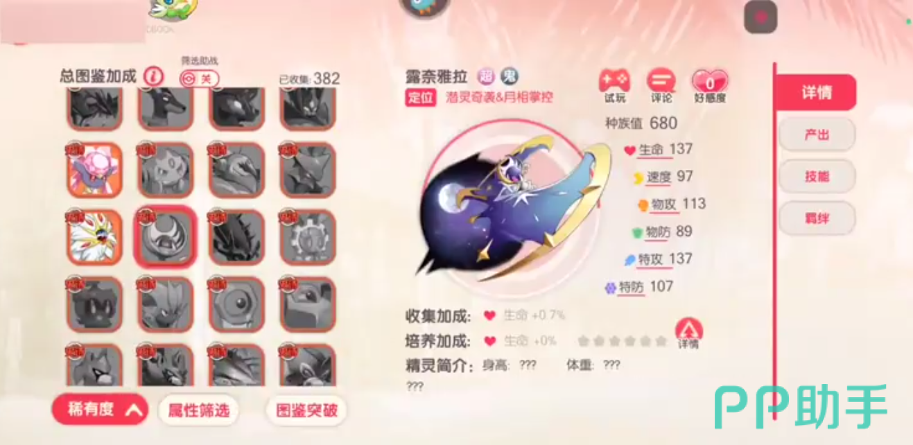 她的技能体系包含三项关键能力:被动技【月轮月相】可随行动叠加“月魄”层数,每层提升基础属性,叠满5层触发“满月”状态,此时自身造成伤害提高60%,攻击速度提升200%;辅助技【暗月之拥】可为全体远程幻灵角色提供25%技能急速与伤害加成,并使自身及生命值低于50%的友方单位进入“暗月”状态,获得额外生存保障;主动技【月神箭】则对单个目标施放高额物理伤害,倍率为420%。