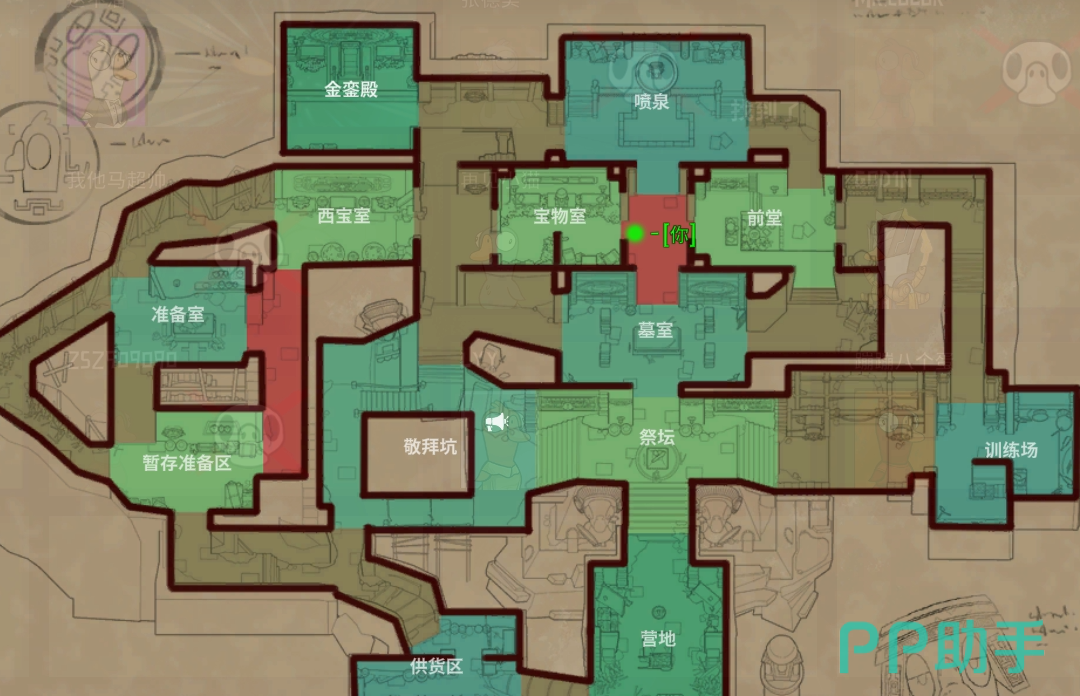 训练场关门任务亦属狼人可选目标之一。相较而言,好人阵营任务数量更为密集:营地需完成搭帐篷;供货区含寻找宝藏;墓室需清除蛇类障碍;盗窃坟墓为独立交互点;通道区域则涵盖打破彩色餐盘、触发陷阱、砍伐木桩及获取日志共四项任务。多线程任务分布要求玩家合理规划路线,优先保障高价值目标与团队信息同步。