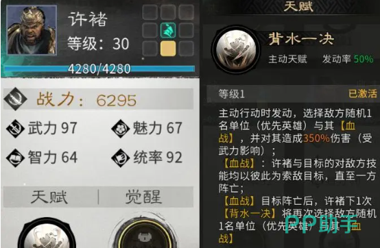 英雄配置推荐输出+防御双核结构:许褚承担主力单体爆发任务,典韦负责前排承伤与反控保护,二者配合可形成稳定击杀链路。技能选取顺序建议为“攻守兼备”优先,“单枪匹马”次之;兵种搭配需兼顾前排坦度与后排输出;宝物选择应以触发套装效果为第一目标,并优先装配至核心输出角色身上。全程保持策略连贯性,最终登顶排行榜首位即可领取“卧龙之智”称号。