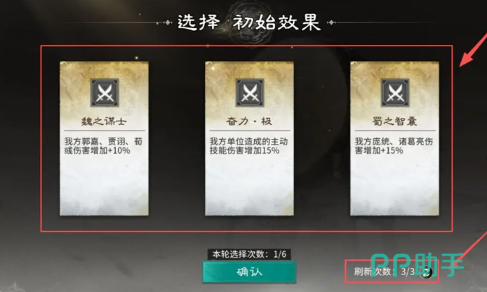 正式开局前,系统将展示当期可用卡牌效果,涵盖技能、士兵、宝物三类。首回合提供3次免费刷新机会,便于玩家筛选最优组合。最终排名依据两项指标:成功通关轮次数量与剩余血量总值。当期全服排名第一者,即可解锁专属限定称号“卧龙之智”。