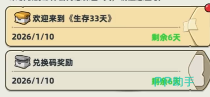 《生存33天》当前可用兑换码汇总:三组有效CDK已实测可兑,含丰厚资源助力新手快速成型。本文整理截至2026年1月16日仍处于有效期的全部官方兑换码,并详解对应奖励构成与实际游戏价值,帮助玩家高效获取启动资源。