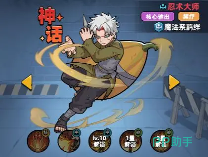 忍术大师为远程魔法输出型角色,核心机制围绕「持续燃烧」展开,每段燃烧结束时可叠加自身攻击力,同时附带禁疗与炙烤控制效果。该角色成长曲线平滑,零氪或微氪玩家可将其作为主力输出培养,在面对高回复能力敌人时具备显著压制优势。