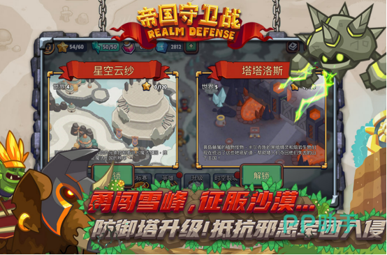 采用明快卡通渲染风格,构建出阿特拉幻想世界。游戏中包含105种形态各异的敌方单位,涵盖哥布林、巫师、石像鬼、熔岩巨人等多类怪物,其攻击模式、移动路径与弱点属性各不相同。战场地图高度还原奥洛王国等标志性地域风貌,玩家需部署炮塔、布置陷阱、召唤英雄并实时调整阵型,在有限资源下制定最优防守方案,抵御波次递进的怪物侵袭。