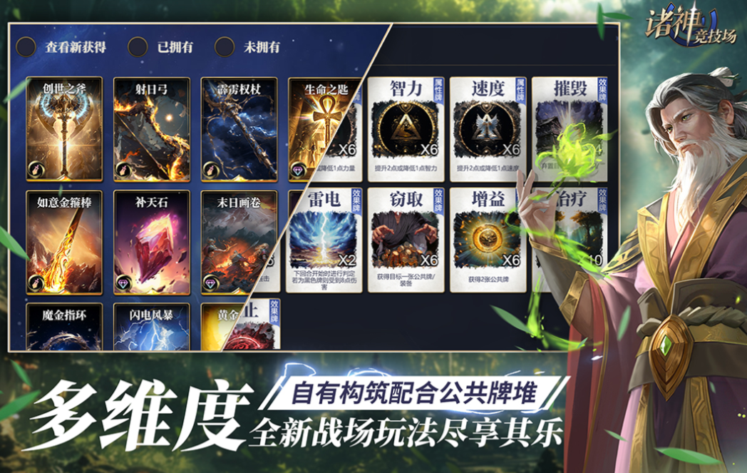 本作融合希腊、北欧、埃及等多神话体系,打造高自由度卡牌构筑玩法。玩家可从超百位神祇角色中选取核心单位,搭配专属技能与符文系统,形成差异化卡组。除常规PVE闯关外,还设有身份局、2v2实时对战等真人交互模式,强调策略预判与临场响应。卡牌效果设计打破传统数值框架,注重联动逻辑与场景适配,显著提升战术纵深与重复可玩性。