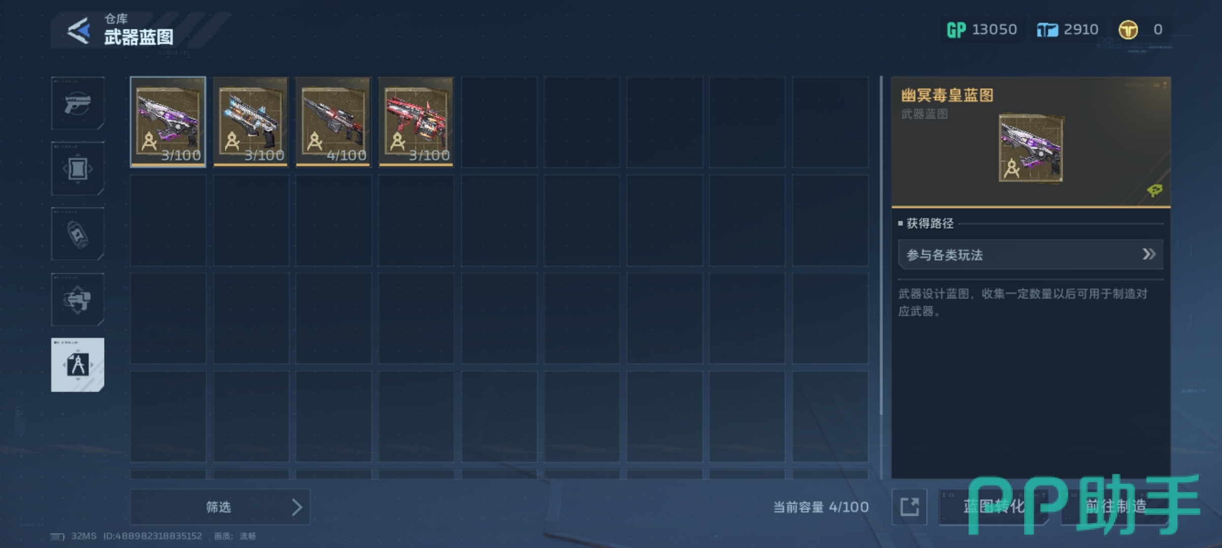 尽管当前版本活动密集、武器池中金色传说武器种类有限,但实际获取难度较高,且存在显著随机性。当重复获得同一把金色武器时,单纯囤积并无额外收益;此时蓝图转化便成为关键补救手段。需注意:该玩法仅适用于金色传说品质武器及其配套专属蓝图,二者缺一不可,且必须同时处于玩家背包中方可触发转化条件。