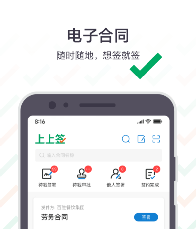 它主打高效协同签署,适合企业日常办公和多人签约场景。它支持多终端无缝切换,手机上可发起签约,电脑端也能同步查看进度。除了手动签名,还能设置默认签名一键搞定,合同内容全程不可篡改。