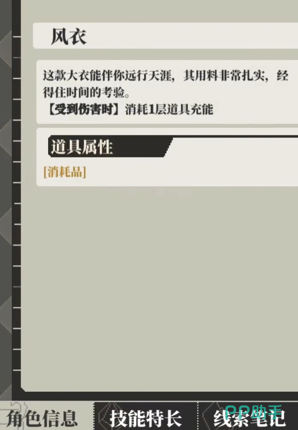 角色属性并非固定不变,会受到装备品质、道具加成、技能搭配及成长路径等多重因素影响。提升属性的有效方式包括:优化装备词条匹配度、合理使用增益类消耗品、完成阶段性成长任务,并依据职业定位进行定向强化。例如风衣可提升道具使用频率,但属于一次性消耗品,需注意资源管理;饮料与喷火器等工具则在特定场景中具备不可替代的战术价值。