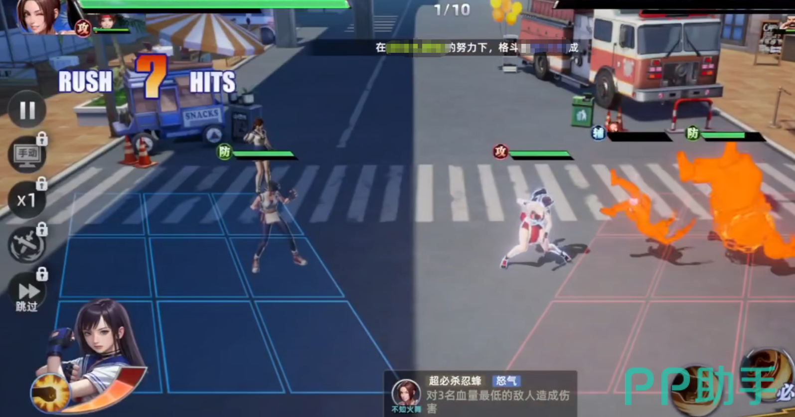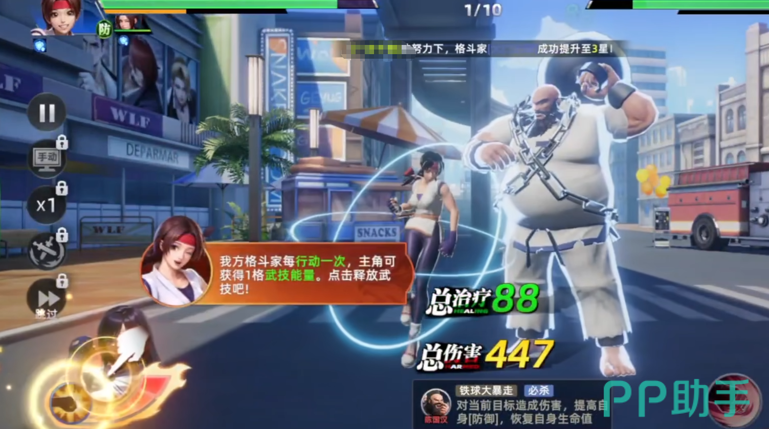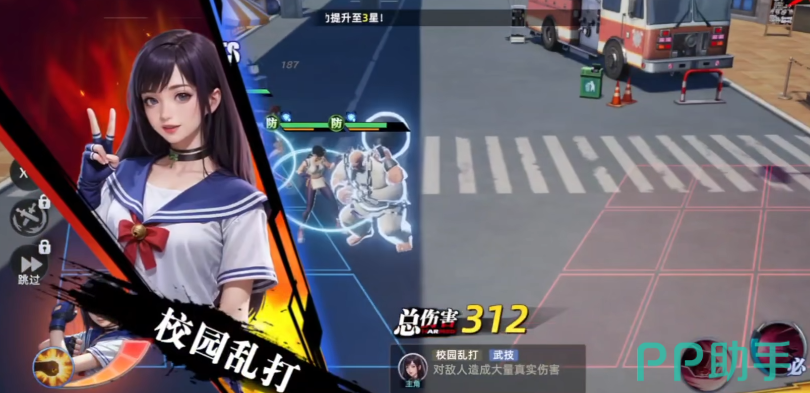 操作方式简洁直观:能量充满后,点击屏幕左侧对应角色头像即可施放。以主角为例,可释放“校园乱打”,该技能造成大量真实伤害,无视部分防御属性;若希望加快流程,支持一键跳过动画演出。