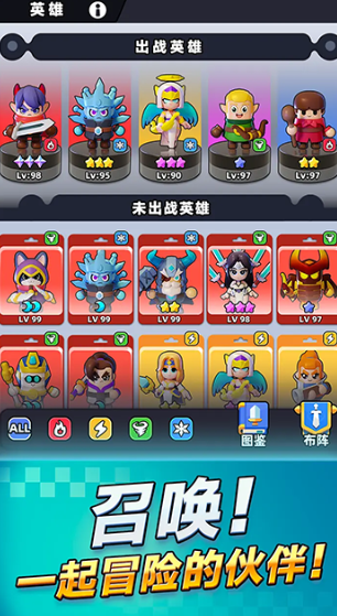 在调整阵容,然后根据战局选择技能之后,一根手指就可以享受割草式的快感。5~10分钟的单局时长可以让上下班路上就能享受更加轻松的体验。这款游戏的美术风格是比较有特色的,Q萌的卡通建模搭配暗黑的奇幻场景。无论是英雄还有魔物的形象,其实都是比较有魔性的,技能在释放时还会拥有很出色的动态光影效果。地面冰痕,还有火焰图腾,可以让战斗的画面更有层次感,哪怕是小怪都会有一个专属的造型设计,每一次的闯关都好像是体验趣味性的动画。