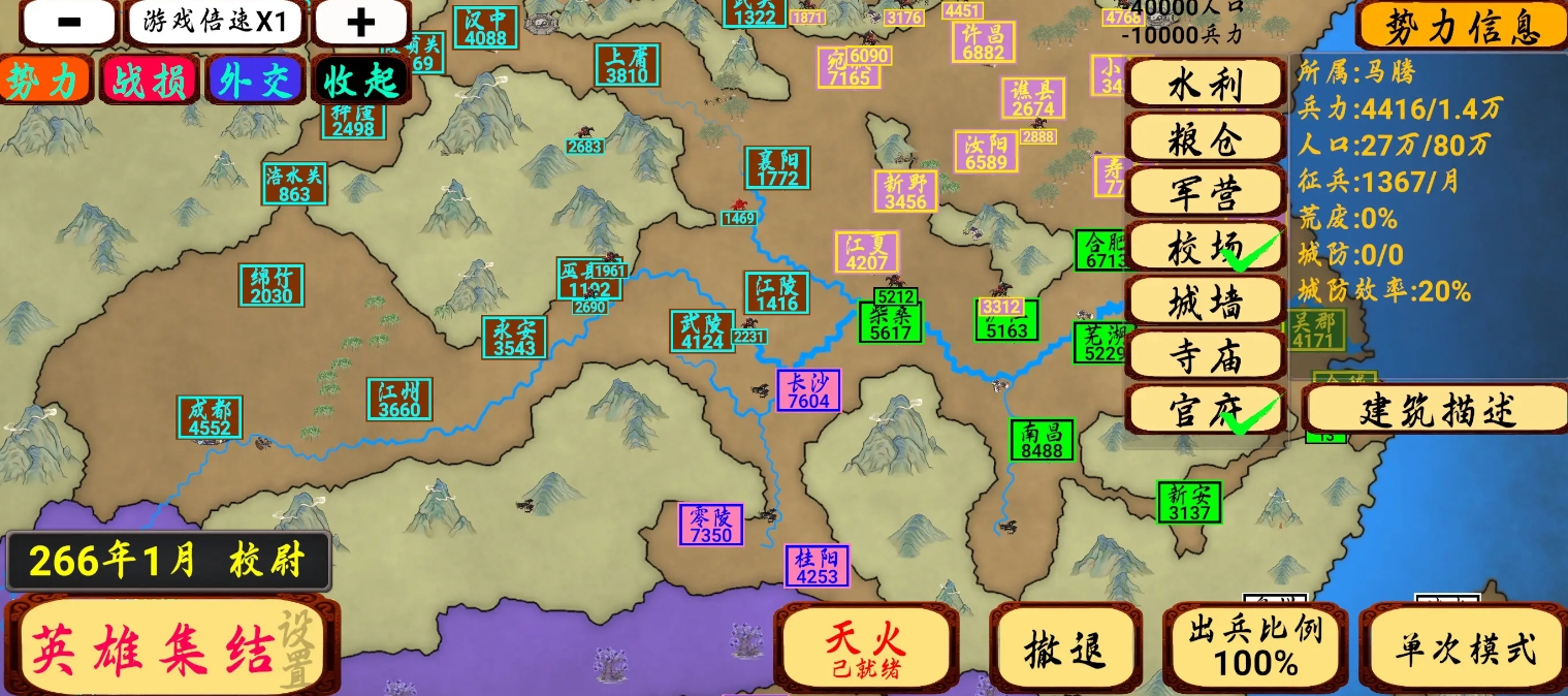《指划江山》是有着硬核乐趣的抢地盘游戏,人们可在里边成为势力的君王,调动自己的士兵去攻占势力范围内的城市,扩大自己的疆域版图,最终实现让全天下都尽握在自己手中的壮举。当然,派兵攻打他人时,各位也要用心地去完成势力的经营,确保有足够的粮草能支持自己的连番征战,以及能训练出更多的士兵前往焦灼的战线与敌人对抗,只有做好这两点,才能让自己在指尖掌握乾坤。