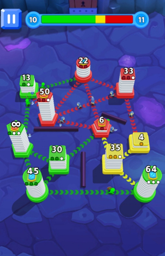 调兵攻城,只要能占据所有的城市,不给对手留下任何的生存空间,便能让人们在《占城大师》中胜出,成功达成将城市全部占领的目标。所有玩家都会在游玩时获得自己的初始城市,且所有人的兵力涨幅都是一样的,所以只能通过战术来完成士士兵的调配,确保自己能以最少的兵力,来完成占领更多城市的壮举。同时,游戏还会在上方实时显示不同势力的占城比例,供玩家随时去查看局势。