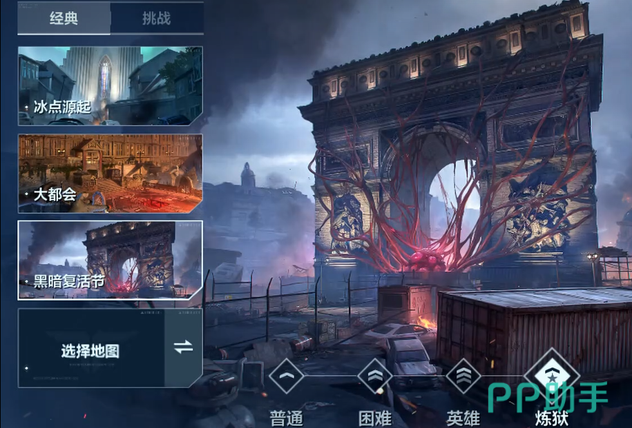 目前僵尸猎场一共开放了三张地图,分别是大都会,冰点源起还有暗黑复活节。每张地图的风格都不一样,打起来的感觉也有差别。这三张地图都支持五种难度,从简单到难依次是普通,困难,英雄,炼狱和折磨。难度提升之后,不只是怪物血量变多那么简单,敌人的种类也会增加,打法上得跟着调整。