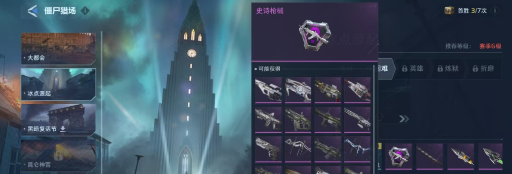 光荣之路、黎明之光和钢铁骑士这三把冲锋枪则需要玩家刷活动副本了,在刷活动副本的时候都有可能会掉落这三把武器哦,比如说玩家们在刷僵尸猎场的时候就有可能会拿到史诗品质的枪械呢,此外,玩家们还可以通过限时活动来获得钛金跃迁秘藏,开启秘藏就有机会获光荣之旅、黎明之光和钢铁骑士这三把武器了哦。