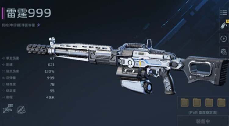 另外大家还可以用雷霆999这把武器,这个武器很多的角色都是在开箱子的时候有很大概率开出来的,大家开荒时期用它的话,其实它的数值是绰绰有余的,毕竟在紫色武器里面,它的数值也不差,利用自己技能可以在一定时间之内击中敌人的时候带来一个电属性的伤害数值,而且这里进行连锁伤害的时候,技能可以根据闪电能力带来直接输出,后期它在优势效果上面是具有足够多的弹匣容量,这样的能力可以让雷霆999拥有更多的弹匣输出,不用频繁的换弹,而且在进行持续输出的时候,它的手感也是会更加舒适的。