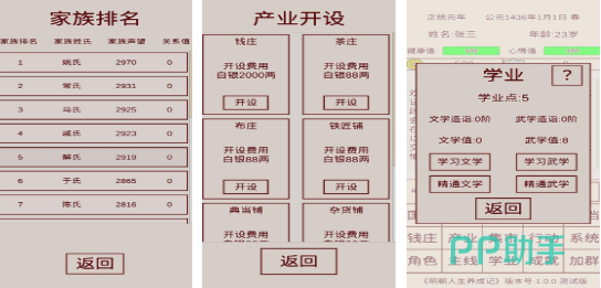 基于明代历史脉络打造的文字向模拟养成作品。时间轴严格覆盖洪武至崇祯年间,出生设定影响家族声望与社会阶层。游戏内嵌真实历史节点,如靖难之役、土木堡之变等事件将随进程随机触发,玩家抉择直接关联人物命运与时代走向,实现历史情境下的沉浸式人生推演。