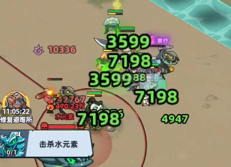 进入近战距离后,水人将交替释放环形扩散波与直线横扫技能。二者均具备较大判定半径与较高伤害,但因施放前摇明显、起手距离较远,可通过横向侧移或短距后撤轻松规避。推荐由高防御角色正面承伤吸引仇恨,其余输出单位保持中距离绕行输出,避免集中站位导致群体误伤。