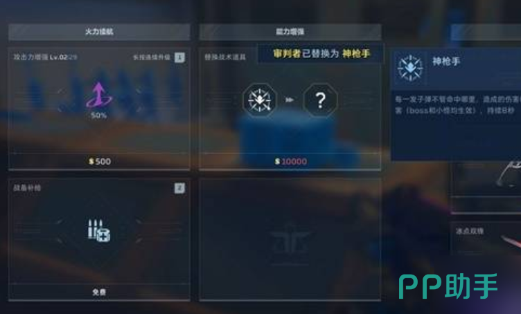 神枪手强化精准打击能力。效果触发后,持续8秒内所有命中目标的子弹,除基础伤害外,额外附加弱点伤害。该增益特别适合搭配具备高暴击率或弱点判定加成的武器与天赋,是应对高护甲Boss与精英单位的核心输出增幅手段。
