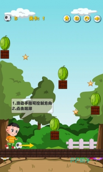 本作以标志性齐刘海造型与夸张头身比塑造出极具辨识度的角色形象。玩家需通过精准控制踢球角度与力度,击打散落在场景各处的西瓜目标。关卡设计巧妙融合物理反弹机制,考验手眼协调与空间预判能力,操作响应灵敏,反馈清晰直观。