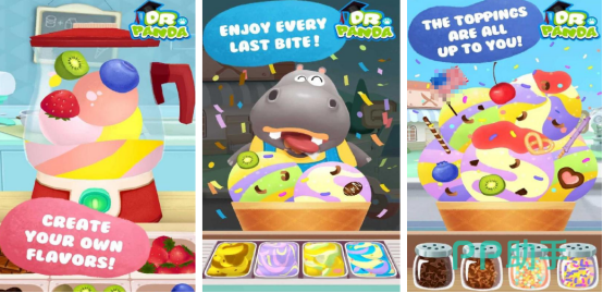 由熊猫博士主理的移动甜品站,主打高人气地段精准布点策略。所有原料均标注品质等级,涵盖黑巧豆、山核桃、蓝莓果酱、椰蓉、海盐焦糖酱等二十余类核心配料,支持无限制自由组合,理论可生成超300种风味组合。操作方式极简:手指滑动选取基底(如牛奶雪糕、酸奶冰沙、意式奶盖),再拖拽添加辅料与顶部装饰,实时预览成品效果。适合各年龄段玩家快速上手并持续进阶。