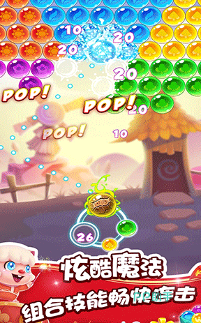 小小的屏幕里飘着五颜六色的泡泡,玩家只需按动按键,就能调整泡泡发射的角度,把新泡泡朝着相同颜色的泡泡群射过去。只要同色泡泡连在一起的数量达到标准,就能一次性消掉一大片。每一关的要求都不一样,每次消除泡泡都会累积相应的分数,有的关卡需要消掉规定数量的某一种颜色泡泡,有的则要求打破屏幕下方的障碍物才能过关。