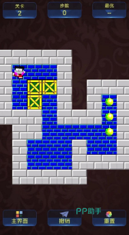 本游戏的场景就是一块块布局各不相同的方格场地,场地里摆着箱子和要到达的指定位置。玩家只需要按动按键操控人物移动,把所有箱子都挪到对应的点位上就算完成任务。游戏刚开始的几关难度不高,在场的箱子数量也少,可越往后走,关卡里的箱子就越来越多,能走的路线也变得绕来绕去。稍微不注意就会把箱子推到没法动弹的死角里,琢磨很久才能找到通关方法。