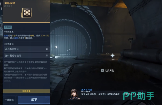 考虑到现代射击玩法对角色机动性的高要求,“电环疾驰”插件专为高移动作战设计。其效果机制独特:角色处于奔跑状态时,每3秒自动向周身释放一道电环,造成200%基础伤害;即使停止奔跑,剩余冷却时间仍可继续计时,确保移动过程中的攻防一体。该插件特别适用于开阔地图探索、侧翼突袭或快速转点等需要高频位移的战术环节。