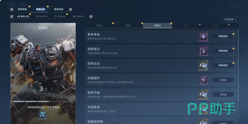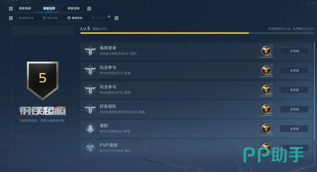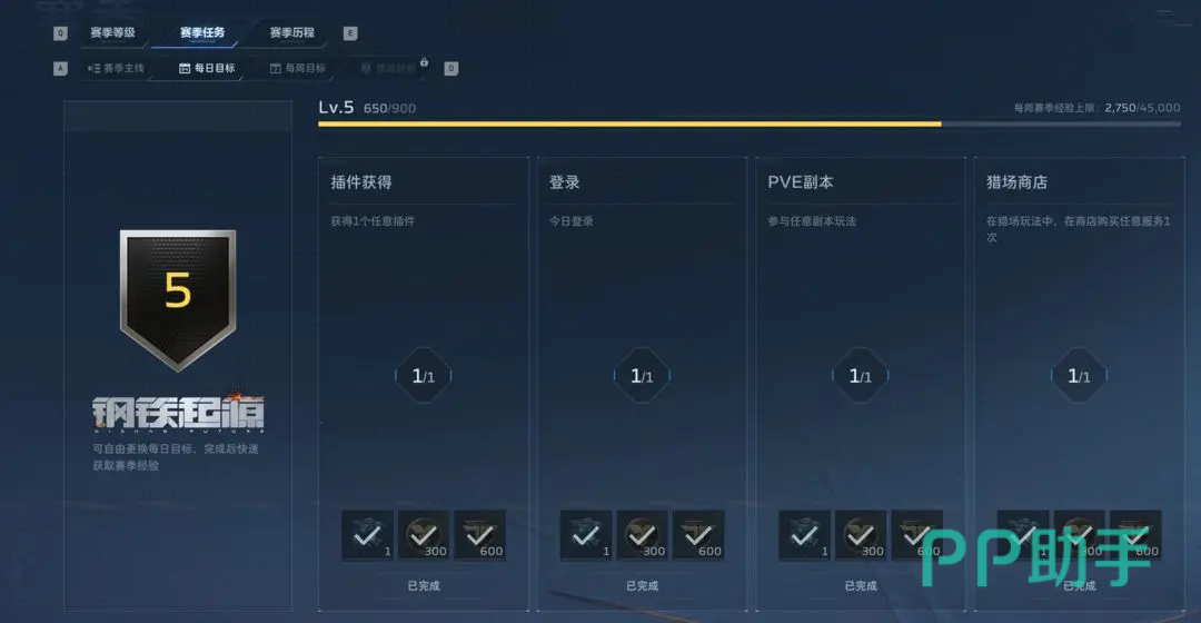首先重点的就是任务系统,有每周,每日任务,还有赛季主线,挑战任务,前中期获取经验的重点来源就是这些任务,前面描述的顺序,其实就是大家去做任务的优先级,每日任务最简单,如果看到无法完成,或是难度较高的,直接刷新掉,正常情况下,基本上开两把就能全部做完,给的经验非常多。