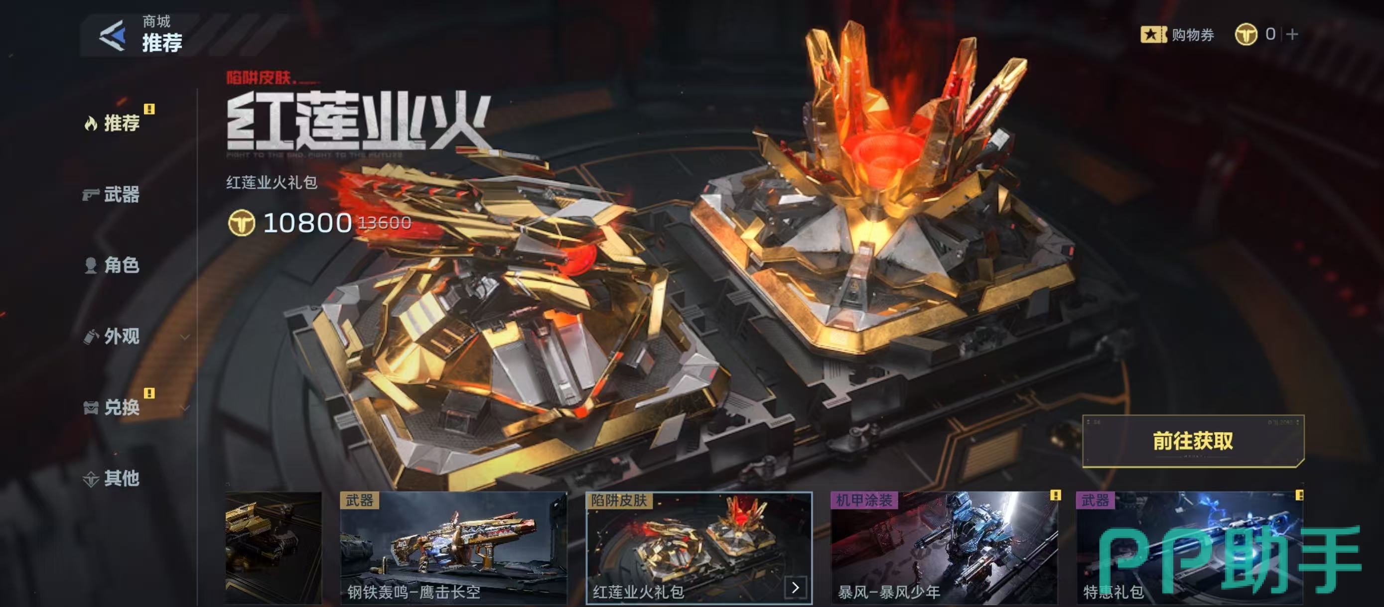 “红莲业火”并非武器本体,而是针对陷阱系统的专属外观方案。装备后可全面改变对应陷阱的建模、光效及动态纹理表现。玩家可通过游戏内通用货币NZ点卷进行获取。当账户点卷不足时,可通过官方指定渠道补充资源。