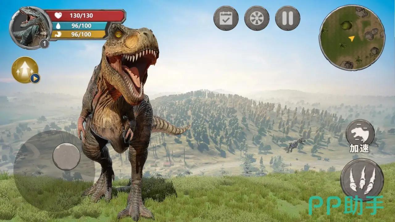 采用写实风格开放世界架构,构建出包含沼泽、火山、针叶林与白垩纪平原在内的多生态地貌。玩家以第一人称或第三人称视角展开野外探索,通过采集化石、追踪脚印、设置陷阱等方式解锁新物种图鉴。恐龙具备昼夜节律与群居习性,部分大型掠食者会主动伏击玩家。生存要素包括体力管理、水源补给、伤势处理及临时庇护所搭建。