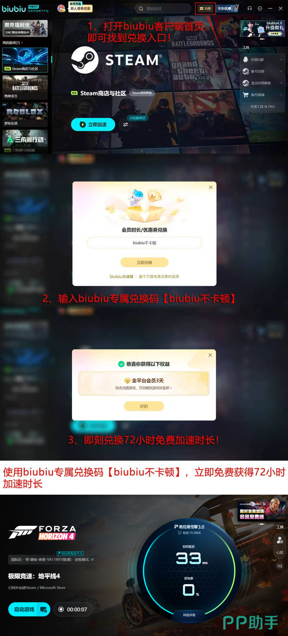 实际体验优于理论描述。当前新注册用户可直接领取24小时全功能免费加速时长,无试用门槛。为进一步降低决策成本,平台同步开放专属兑换通道:输入激活码【biubiu不卡顿】,额外获赠3天连续使用权限。综合计算,每位首次使用者均可获得总计96小时(即4个自然日)的无限制加速服务。该策略既体现产品信心,也印证其在实际网络环境中的可靠表现。
