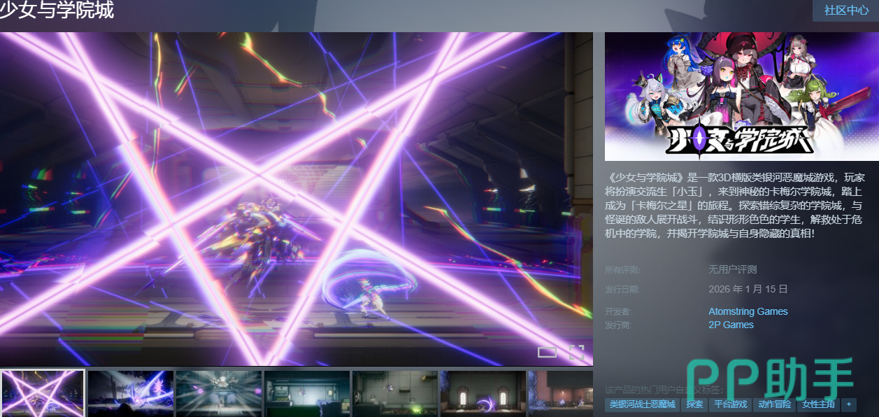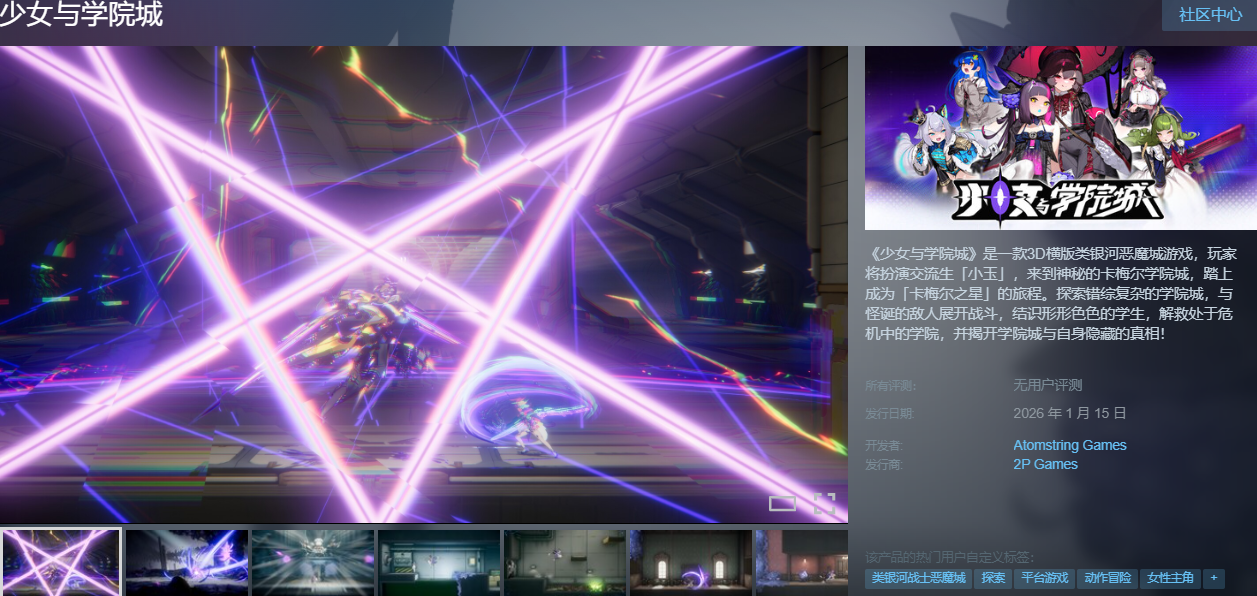 《少女与学院城》是一款融合东方校园叙事与银河恶魔城(Metroidvania)机制的独立动作冒险游戏,凭借细腻的手绘美术风格、非线性探索结构与沉浸式剧情设计,自公布以来持续引发玩家关注。本作已于Steam平台正式上架,支持简体中文,国区定价明确,发售日期为1月15日。
