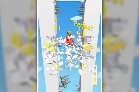 设定为自上而下的垂直跳跃闯关模式。角色从高楼顶端起跳,每次触碰楼层即触发崩塌效果。核心操作仅需单次点击——但陷阱密度高、出现时机随机,包含尖刺阵列、移动横梁、瞬时塌陷等多类障碍。反应速度与节奏预判成为通关关键,失败后可秒级重开,符合轻量游戏“即点即玩、即失即续”的设计逻辑。