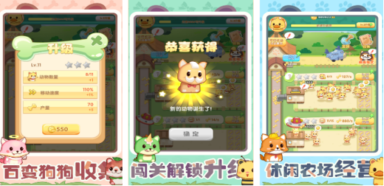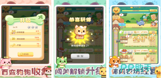 融合卡通视觉风格与轻策略经营玩法。玩家担任农场管理者,在开放地块中进行土地开垦、区域规划与资源调配,逐步召唤并培育多种真实犬种,包括哈士奇、柯基等。成长体系包含日常任务链、合成升级树及形态进化路径,所有核心功能均在低内存占用与低功耗前提下稳定运行。