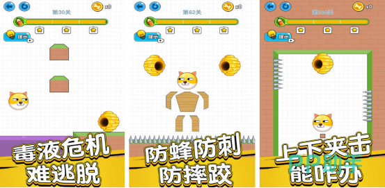 主打烧脑型解谜机制,全关卡采用手绘线条防护系统。剧情围绕一只受威胁的宠物犬展开,玩家需在限定区域内绘制安全路径,规避蜜蜂围攻、毒液滴落、蜂巢坍塌等动态危机。每关机关逻辑独立,如上下夹击结构需分段引导、密闭蜂窝环境需制造临时屏障,强调空间思维与时机把控能力。