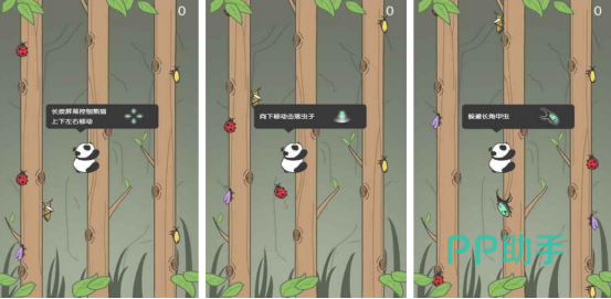 该作复刻经典竖版攀爬玩法,灵感源自早期功能机时代广受欢迎的同类作品。玩家操控熊猫沿树干垂直上行,通过长按调节移动方向(上/左/右),松开则自然下落;下落过程中可清除路径上的害虫,形成良性反馈循环。关卡数量丰富,障碍类型多样,包含移动枝杈、突发藤蔓等动态元素。
