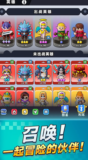 养成体系强调低压力、高自由度。离线挂机即可积累资源,上线一键领取;日常任务、副本通关均产出抽卡券与养成素材,零氪玩家亦能完整体验成长曲线。稀有英雄无需付费解锁,通关对应关卡后即可开启其等级、星级、符文三重培养维度。营地天赋系统与宝物系统内容丰富但结构清晰,含16种随机触发的隐藏天赋,策略拓展空间充足。