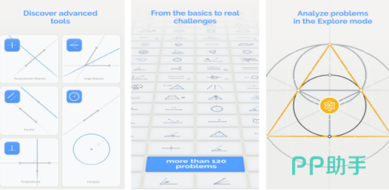 以古希腊尺规作图理论为蓝本构建的几何解谜工具。界面极简,仅保留点、线、圆等基本元素操作区。每关给出明确作图目标(如:过定点作已知直线垂线;以给定线段为边构造正三角形),玩家需调用有限工具组合完成任务。系统自动判定步骤合规性,并按最少作图步数给予星级评价。关卡库持续扩展,涵盖平行线判定、角平分线构造、圆内接多边形等典型命题。