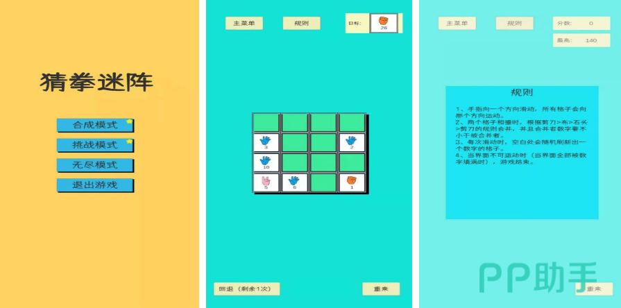 本作采用网格化布局,界面类似数字合成玩法,但核心逻辑围绕“石头克剪刀、剪刀克布、布克石头”的克制关系展开。玩家通过左右滑动操作,使相同数值方块合并;若滑动方向符合克制链(如布向剪刀方向移动),对应数字将减小;反之则阻碍合成进度。在2048式操作基础上叠加策略判断,形成兼具节奏感与思考深度的独特体验。