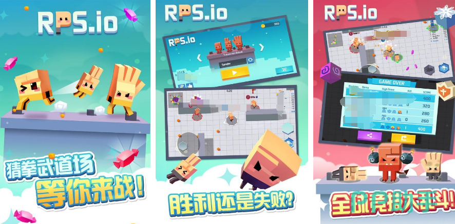 游戏中玩家操控角色在竞技场内移动,角色随行动自动旋转三种道具——石头、剪刀、布。当双方静止对峙时,道具停止转动并触发猜拳判定。胜负并非完全随机:玩家可在判定前主动调整站位与朝向,切换道具类型,实现主动克制。该设计赋予玩家战术干预权,将运气成分转化为可控策略,增强重复游玩价值。