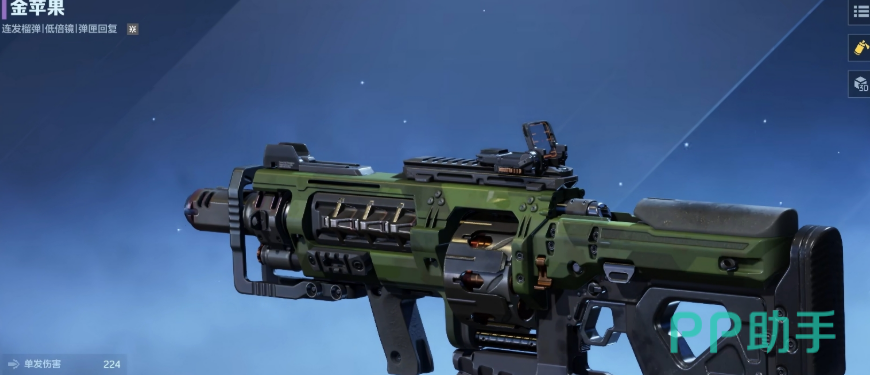 金苹果作为连发式榴弹发射器,基础射速为4.8发/秒,单发爆炸半径5米。其被动技能“双目标回馈”可在单次命中两个及以上敌人时返还100%弹药量;主动技能“自动装填”提供无冷却强制补弹。在常规波次中,该武器平均每分钟触发被动22次以上,实际作战中弹药净消耗趋近于零,彻底规避换弹中断风险。