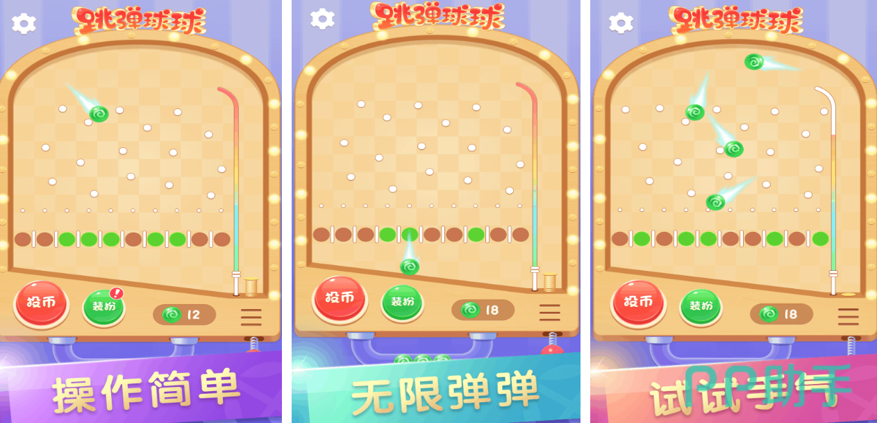 融合经典弹珠物理机制,画面呈现高对比色彩球体。玩家拖动屏幕拉杆调整发射角度与力度,松手后弹射球体命中亮起的目标洞口即可获取额外弹珠奖励,并叠加分数。关卡内设有动态反馈提示,强化操作精准性与成就感。