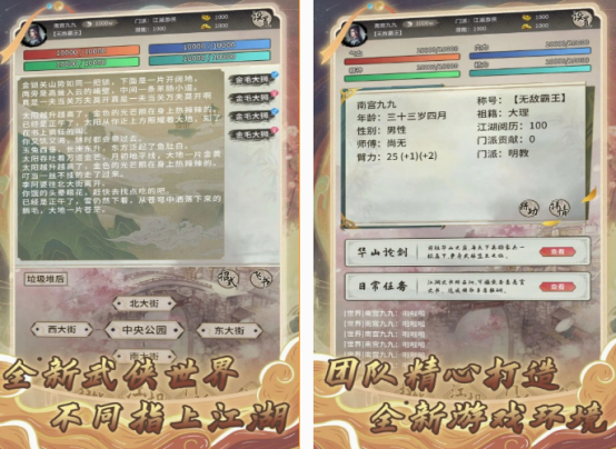 作为前作的升级续篇,《侠岚剑影二》在保留原有文字驱动核心玩法的基础上,全面优化视觉呈现与交互逻辑。界面更简洁,操作更直观,新增资源获取机制显著提速——尤其在挖宝系统中,玩家可高频获得成长所需物资,加速角色进阶进程。整体延续低门槛、强代入的文字武侠风格,无需复杂操作即可沉浸于快意恩仇的江湖日常。