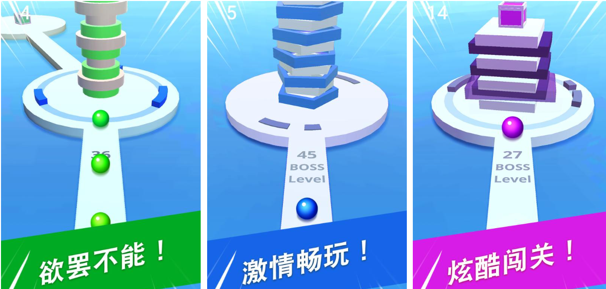 本作采用垂直下落式操作机制,玩家需精准预判落点,在多层动态变化的平台上引导小球持续下降。支持数十种可更换皮肤,关卡节奏紧凑且富有挑战性。地图采用真实物理破坏反馈系统,碰撞碎裂效果细腻自然;界面配色明快活泼,UI动效流畅,整体营造出强节奏感与即时解压体验。