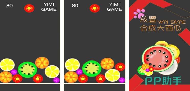 主界面中央为开放式合成场域,各类尺寸水果随机自上而下坠落。玩家通过左右滑动控制落点横向位移,只要任意方向相邻的同规格水果发生接触,即可完成体积递增型合并,最终目标为达成最大等级——圆润饱满的西瓜形态。