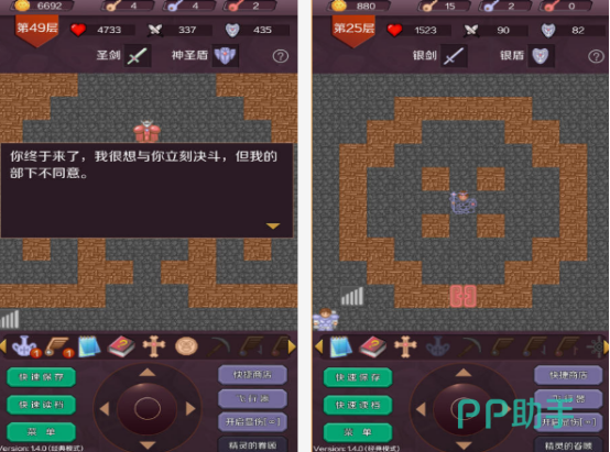 基于PC端经典RPG《魔塔》系列打造,完整复刻50层地牢结构,每层均配置固定怪物类型、道具点位与事件触发条件;角色属性成长采用数值驱动机制,需权衡攻击、防御、HP与钥匙获取策略;战斗为自动回合制,胜负取决于战前属性配置与资源分配,强调规划性与重复尝试后的经验积累。