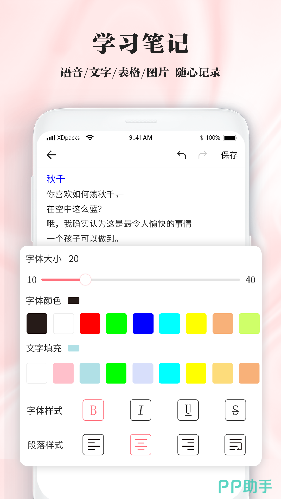 聚焦精细化文本控制与数据可视化管理。提供完整的格式工具栏,支持加粗、斜体、下划线、对齐方式、缩进、字体大小及色彩设置;兼容语音转文字与图文混排布局。后台自动统计笔记数量、分类占比、新增趋势等维度数据,辅助用户评估知识积累进度。隐私保护机制完善,支持笔记加密锁定,需独立密码访问,保障敏感内容安全。
